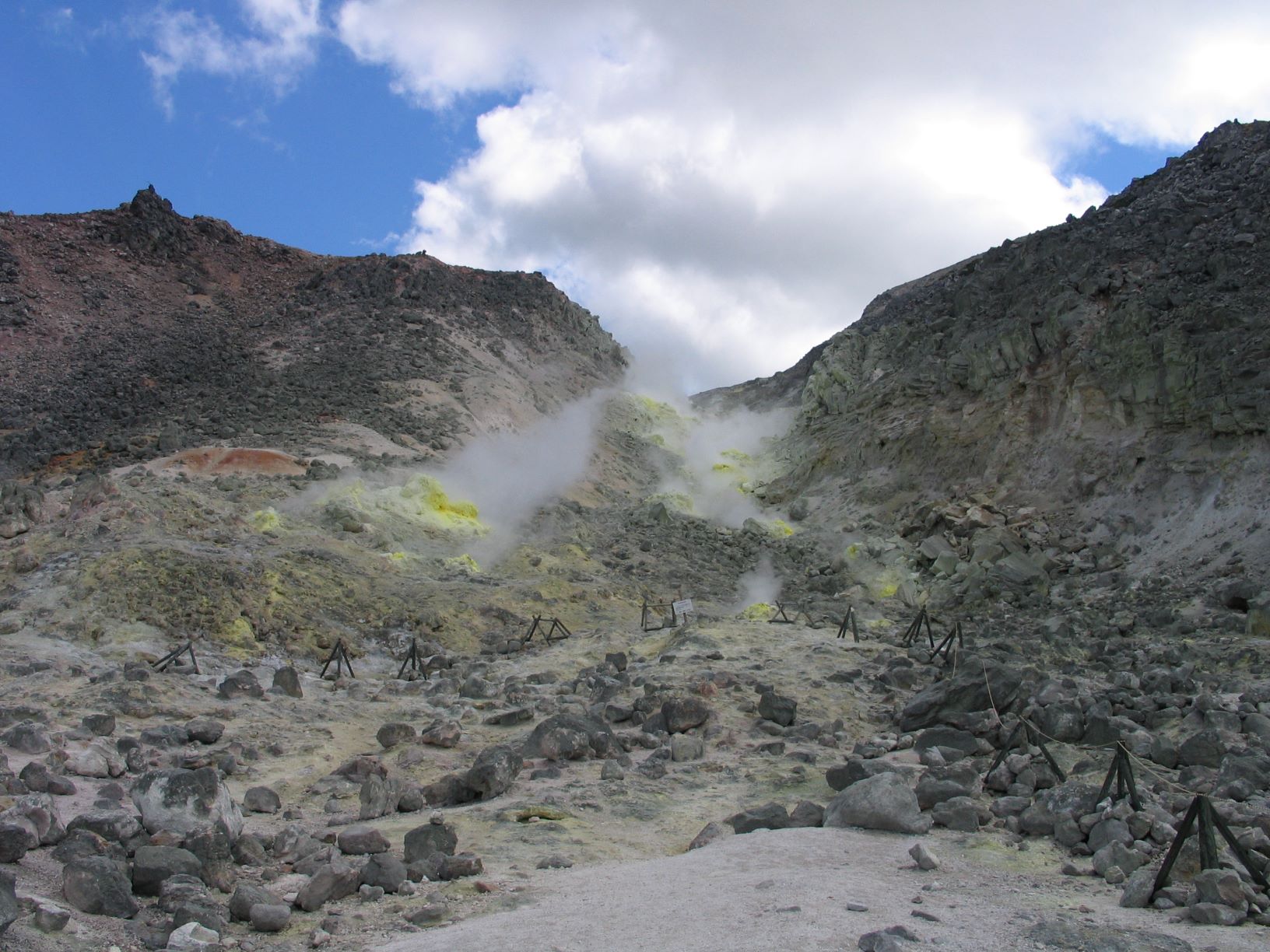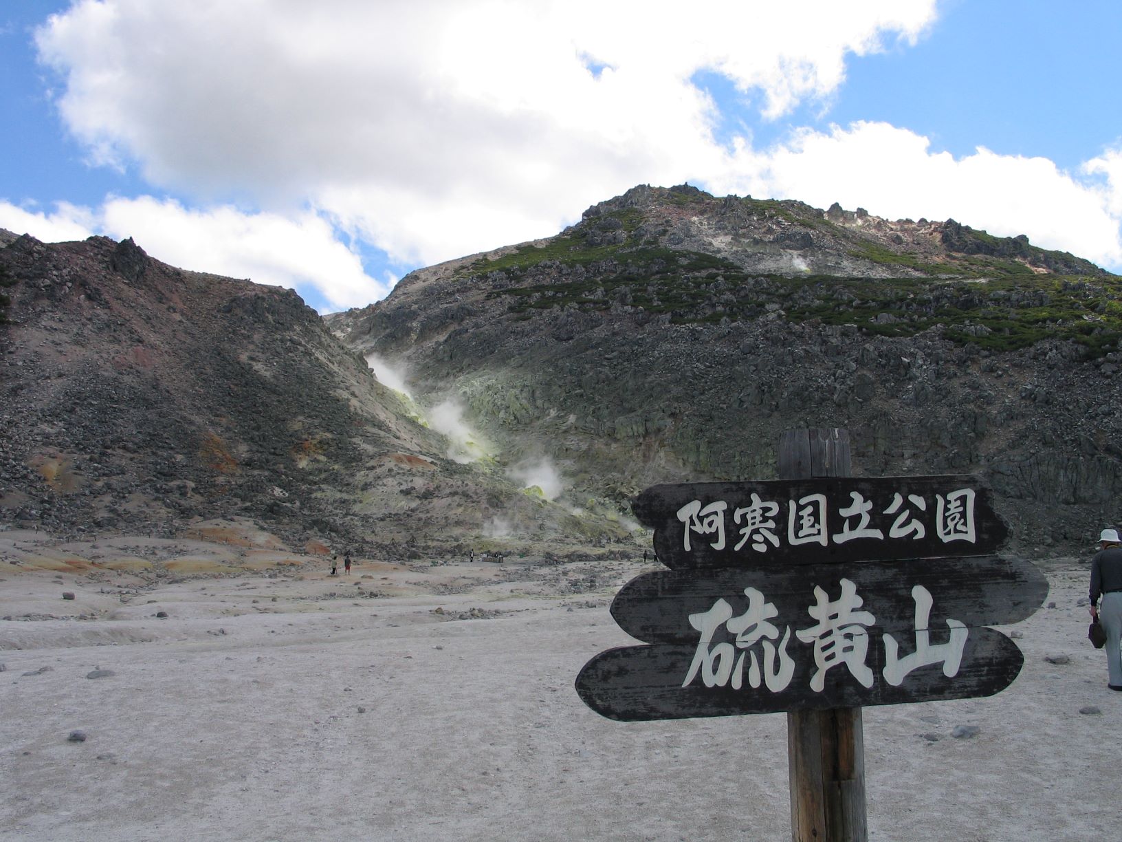 摩周湖Mashuko와 屈斜路湖Kussharoko 사이에 수증기와 유황 증기를 내뿜는 벌거숭이 산이 하나 있다. 硫黄山Iozan 글자 그대로 유황을 내뿜고 있었다. 우리나라에서는 볼 수 없는 살아 있는 화산 활동이라 신기하다. 일본에는 활화산이 많이 다양한 형태의 활동을 볼 수 있는데 진흙 구덩이가 끓거나 분화구에서 유황 증기가 뿜어져 나오는 여러 곳이 있다. 이 곳 硫黄山이 가장 가까이서 볼 수 있는 곳이 아닌가 싶다. 처음 갔었던 2005년에 비해 2017년의 활동이 훨씬 강해졌음을 확실이 느꼈다. 하긴 그 사이에 九州Kyushu의 여러 화산이 터지긴 했다. 일본 열도가 점점 뜨거워져 가고 있다는 생각이 든다. 아래 2013년의 사진을 보면 처음 2005년보다 수증기가 많아 보이고 그전에 없던 울타리가 보인다.