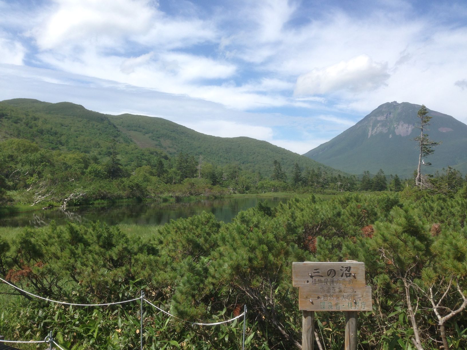 시레토코고개에 주차한 후 잠시 주변 경치를 즐기다 버스를 타고 입구에 내렸다. 입구에 안내판이 있어 쉽게 찾을 수 있다. 햇살이 따가운 더운 여름날이라 조금은 힘겨운 산행을 시작했다. 호수까지 가는 중간에 총 5개의 연못이 있는데 번호로 매겨져 이름이 一の沼, 二の沼, 三の沼, 四の沼, 五の沼이며 세번째 연못 지나서 작은 습원도 있다. 一の沼는 등산로에서 약간 안쪽에 있는데 접근이 제한된다.