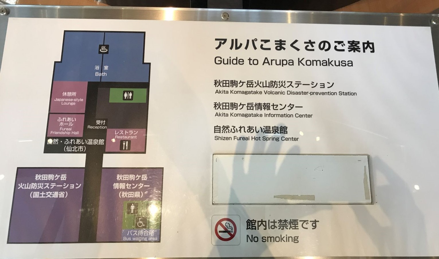 사실 여기 코마가타케는 7월 24일에 올라가려 했다. 버스를 타는 アルパこまくさ[Alpa Komakusa]에서 버스표를 사려하니 버스 운행이 중단되었다고 했다. 큰 비가 왔기 때문이었다. 아쉬움을 뒤로하고 이 시설을 둘러본 뒤 다른 곳으로 향했다. アルパこまくさ[Alpa Komakusa, 아루파코마쿠사]는 영어 Alpine, Spa를 합친 말에 Komakusa를 붙인 이름으로 自然ふれあい温泉館 [Shizen Fureai Hot Spring Center]、秋田駒ヶ岳情報センター[Akita Komagatake Information Center]、秋田駒ヶ岳火山防災ステーション [Akita Komagatake Volcanic Disaster-Prevention Center] 이 세 개의 시설이 같이 있다. 이 곳에서 코마가타케 지역의 일반적인 정보 및 화산에 대비하는 활동 등에 대해 볼 수 있었다. 이름에도 들어있는 고산화 こまくさKomakusa의 사진도 볼 수 있었다.