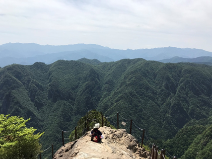 大蛇嵓Daijagura, 큰 뱀 바위라는 이름인데, 내 생각에는 능선에서 바깥쪽으로 큰 뱀이 머리를 내민 모습에서 유래한 듯하다. 순환길에서 Daijagura를 향해 조금은 험한 길을 가다 보면 바위 무더기들이 나오고 마지막에 깊은 계곡을 향해 쑥 머리를 내민 Daijagura가 있다. 양 쪽에도 깊은 계곡이고 특히 앞쪽은 밑을 보기 어려운 깊은 계곡이다. 앞에 펼쳐진 깊은 산세는 매우 수려하여 잠시 깊은 생각에 잠기게 한다. 검색에서 본 가을철 사진처럼 단풍이 든다면 지금과는 또 다른 황홀한 풍경이 펼쳐질 듯 하다-특히 가을 풍경이 멋지다고 소개되고 있다. 미끄러지면 낭떠러지이기 때문에 쇠사슬로 울타리가 쳐져 있다. 사실 좁고 평탄하지 않은 바위 위에 있어야 하기 때문에 오금이 저릴 수도 있다. 여기서 본 산세와 산행을 마친 후 新宮市Shingu를 향해 가는 주변의 산세가 매우 깊다. 예전 四國Shikoku에서 본 V자형 계곡의 깊은 산세와 비슷하다는 생각을 했다. 직접 봐야만 그 위엄을 느낄 수 있지만 이미지 검색으로 다양한 모습을 먼저 경험해 보기를 추천한다.