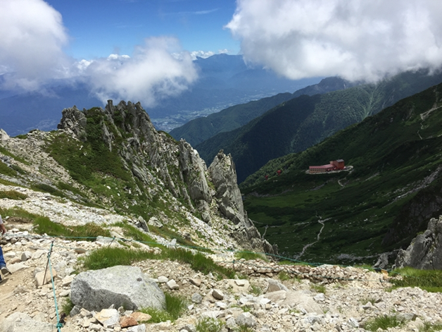 올라왔던 길을 다시 조심스럽게 내려간다. 千畳敷カール를 돌며 다시 한번 위쪽 절경을 감상한다. 이 코스에는 조그만 剣ヶ池 연못이 있다. 짧은 산행이었지만, 상당히 고되었기 때문에 다양한 고산식물에 대한 감흥이 적다. 역으로 돌아가 휴식을 취하기로 한다. 이 역 건물에는 호텔이 있고 레스토랑과 카페가 있다. 이 호텔에 머물며 하룻밤 묶는다면 칠흑 같은 어둠 속의 아름다움을 맛볼 수 있지 않을까 쉽다.