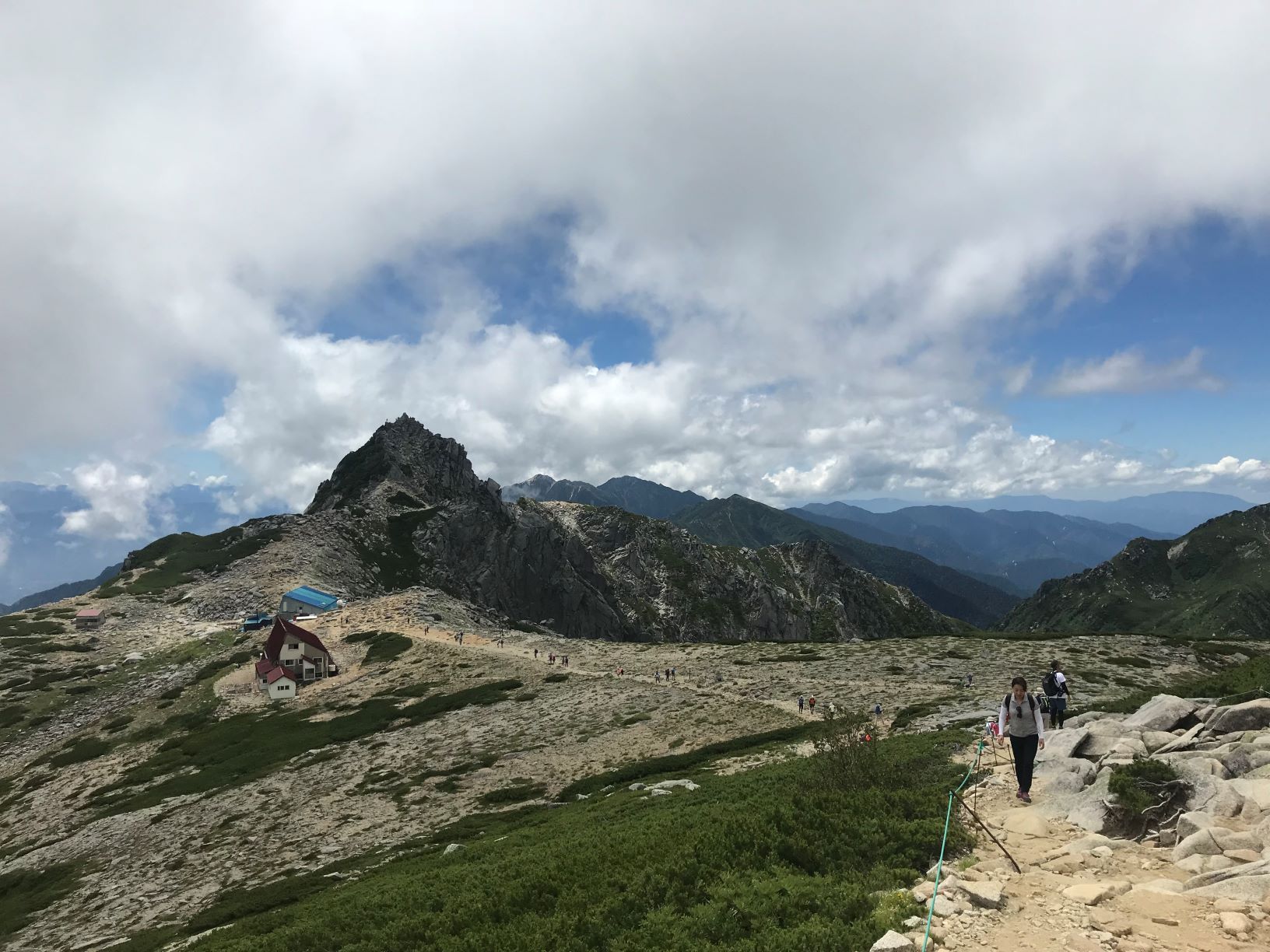여기서부터 中岳Nakadake까지는 완만한 능선길이다. 여기를 지나 다음 봉우리가 애초 목표했던 최고봉 駒ヶ岳이다. 하지만 아이들은 많이 지쳤고 더 이상 힘든 코스를 같이 가기에는 무리이다. 中岳까지는 왕복 30분이면 가능하고 시야가 탁 트여 있었기 때문에 아이들은 산장 주위에서 휴식을 취하고 아내와 나만 中岳까지 다녀오기로 하였다. 비록 中岳이 최고봉은 아니었지만, 가장 높이 올라온 높이이다. 2,925M 사실 일반인이 올라오기는 쉽지 않은 높이이다.