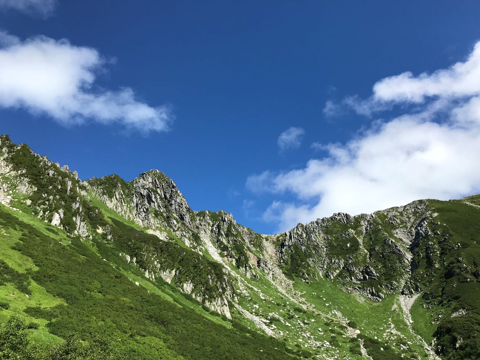 千畳敷駅에 내려 밖으로 나가면 시원한 공기가 맞아 준다. 아래쪽은 30도가 훌쩍 넘는 무더운 여름이지만 여기는 18도에 습도는 59% 가장 상쾌한 날씨이다. 앞 쪽에는 전에 사진으로만 보았던 그 모습, 빙하의 침식으로 인해 빚어진 멋진 암벽과 푸르름의 조화. 그 모습을 드디어 두 눈으로 보게 된 것이다. 우리나라에도 바위산이 많지만, 일반적인 바위산과는 다른 신비로운 모습이다. 한참을 지켜보고 난 후 아이들과 함께 사진을 찍으며 경치를 즐겼다.