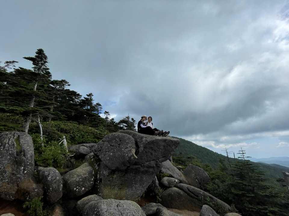 내려오면서는 갈림길에서 꿈의정원으로 향한다. 이름이 참 멋지다. 소개에 이 곳에 큰 화강암군이 있고 바위에서 바라보는 전망이 꿈처럼 아름답기 때문에 이런 이름을 붙였다고 한다. 앉아 쉴수 있는 벤치도 마련되어 있고, 아내와 딸들은 큰 바위 위에 올라 파노라마 전망을 즐겼다. 청명한 하늘과 발 밑으로 펼쳐진 고산의 멋진 푸르름은 언제 봐도 멋지다.
